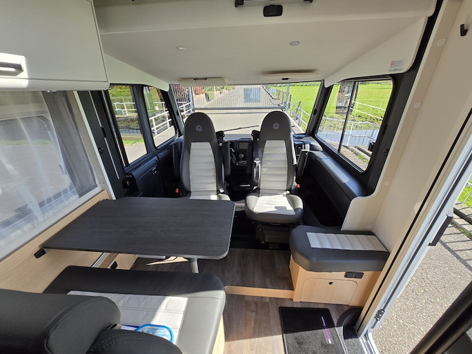 De Sunlight I67S Adventure automaat is een super ruime integraal camper voor 4 personen. Deze indeling heeft 2 draaibare voorstoelen en zijbankje, zodat u ruim kunt zitten.