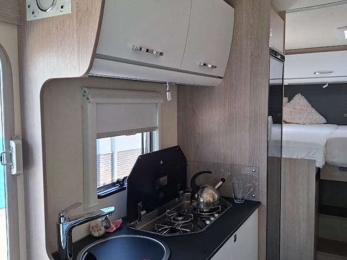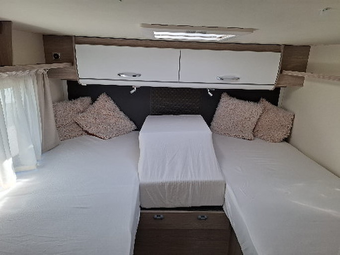De Bürstner Lyseo Time T Skyline 690 G Skyline is een ruime half-integraal camper met enkele bedden. Deze indeling heeft 2 draaibare voorstoelen en een zitbank, waardoor u met 4 personen in de camper kunt zitten.