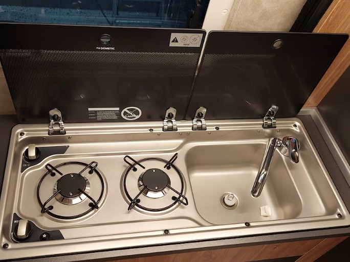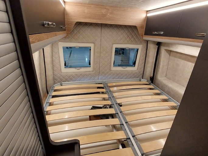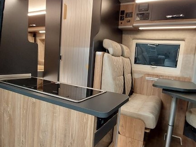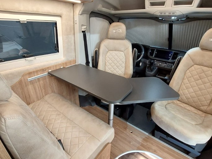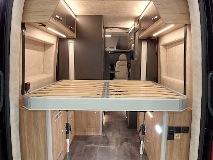 De camper beschikt over een ruime zithoek, complete keuken en doucheruimte met wastafel en verschuifbaar toilet. Achterin bevindt zich een ruim 2-persoonsbed met bergruimte eronder. Het bed is electrisch in hoogte verstelbaar. Door de aanwezigheid van een hefdak, biedt deze buscamper ruimte aan 2 extra slaapplaatsen. Een compacte maar comfortabele camper.
