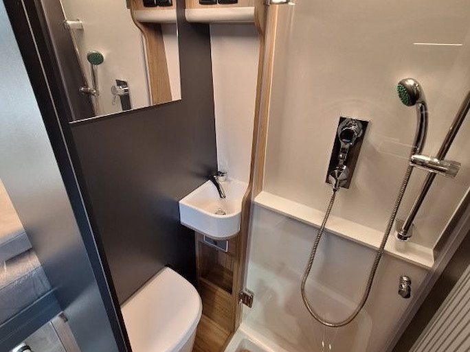 De MegaMobil Classic met hefdak is voorzien van een Clesena C1 droog toilet.