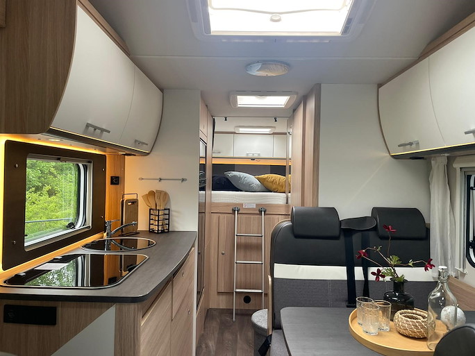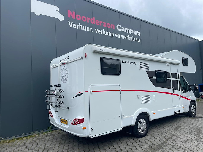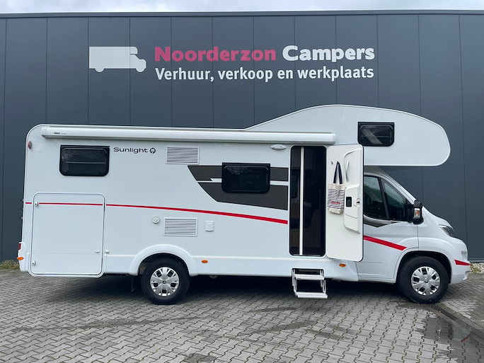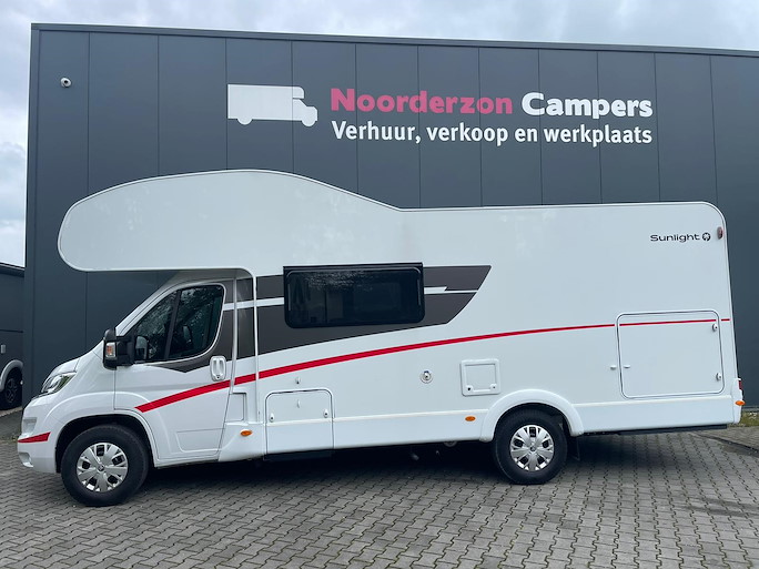 De Sunlight A70 is een ruime alkoofcamper met een lengte van 7,25 meter. Deze camper is geschikt voor maximaal 6 personen om in te rijden en te slapen. Slapen kan op het royale alkoof bed voorin of dwars bed achterin. Van de zithoek is nog een extra slaapplaats te maken voor twee personen.