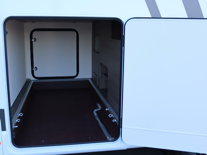 Achterop de camper is geen fietsenrek aanwezig. In de garage is een fietsbeugel voor twee fietsen aanwezig.