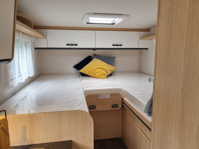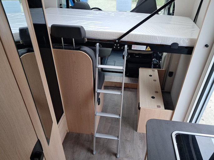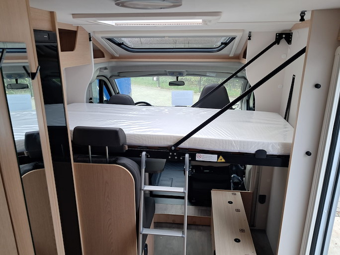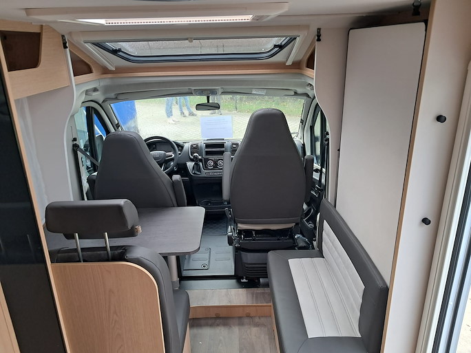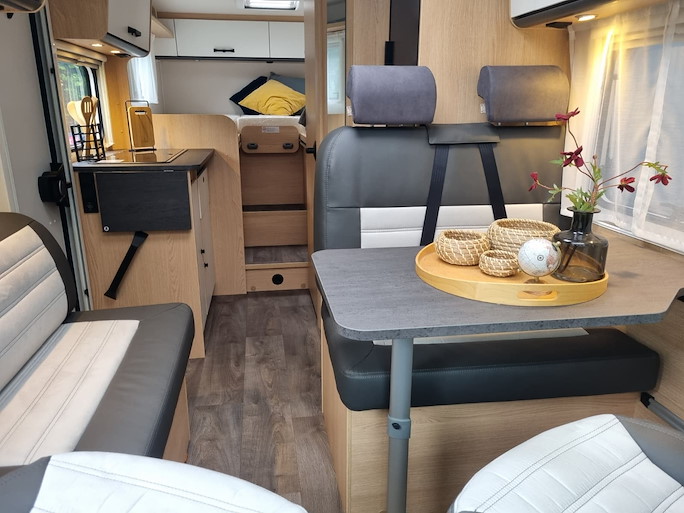 De Sunlight V67S Adventure automaat is een compacte half-integraal camper met enkele bedden. Deze indeling heeft 2 draaibare voorstoelen en een zitbank, waardoor u met 4 personen in de camper kunt zitten.