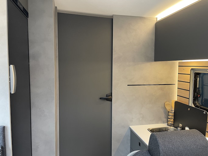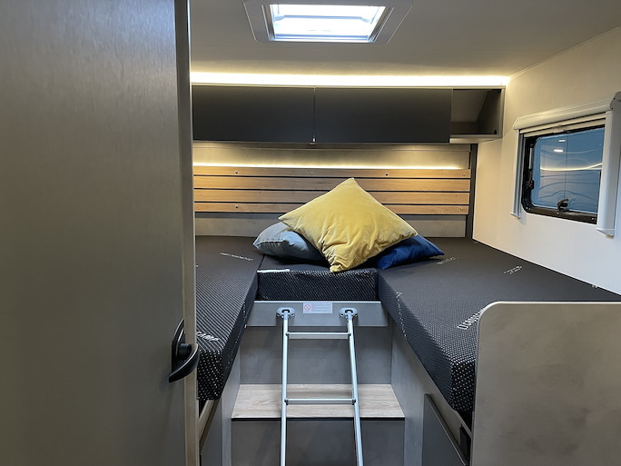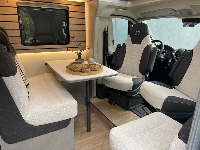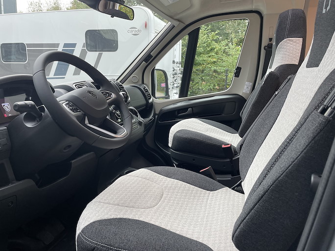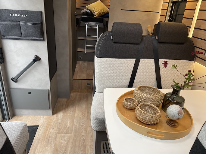 De Crosscamp EXPDN T7.4 E automaat is de meest ruime half-integraal camper met enkele bedden die we hebben. Het slaapgedeelte achterin is met een deur af te scheiden van het voorste deel van de camper. Deze indeling heeft 2 draaibare voorstoelen en kleine zijbank, zodat u ruim kunt zitten.