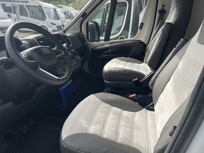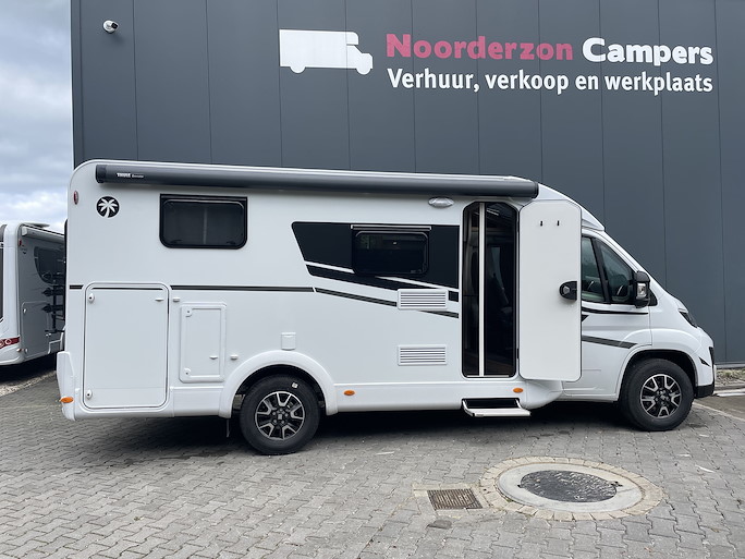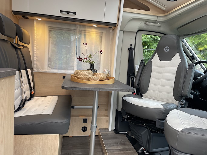 De Sunlight V66 Adventure automaat is de meest compacte half-integraal camper met enkele bedden. Het is het kleine broertje van de Sunlight T66. Deze indeling heeft 2 draaibare voorstoelen en een zitbank, waardoor u met 4 personen in de camper kunt zitten.