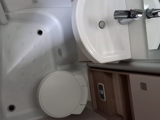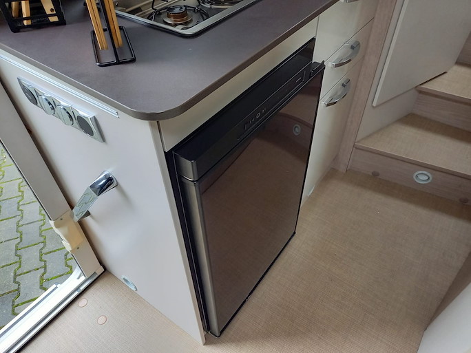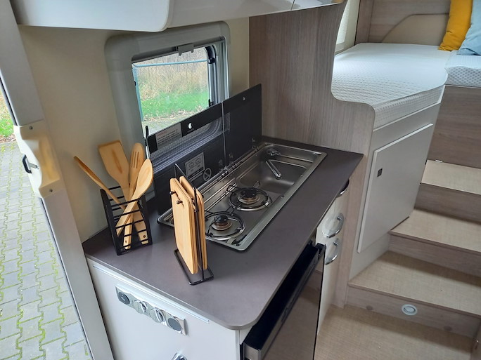 De keuken heeft een 2-pits gasstel, koelkast met vriezer en een wasbak met mengkraan. In de doucheruimte zijn een toilet, wastafel met mengkraan en een douche aanwezig. Onder de enkele bedden is een ruime garage waarin ruimte genoeg is voor uw bagage.