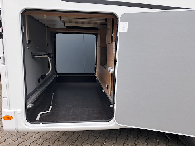 Onder het bed achterin is een ruime garage waarin ruimte genoeg is voor uw bagage. Eventueel kunnen hier ook fietsen in geplaatst worden.